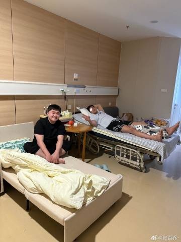 郭艾伦好友,演员张百乔更博晒出了看望艾伦的照片,配文:“老天会眷顾善良的人。”