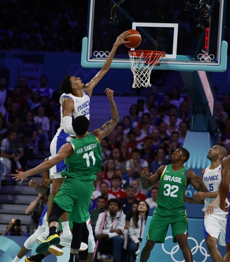 这离谱的天赋!文班亚马闪耀巴黎奥运连续贡献海报级隔扣&盖帽
