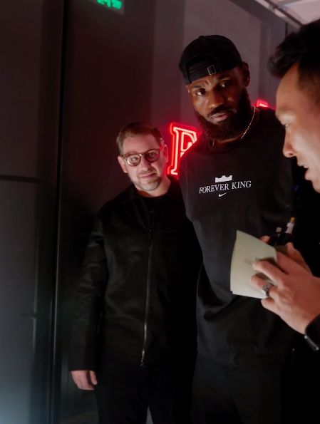 雷速体育9月4日讯 NBA湖人队球星詹姆斯中国行上海站进行中,品牌方为詹姆斯展示中国特别款球鞋,詹姆斯在一旁专心听讲解。