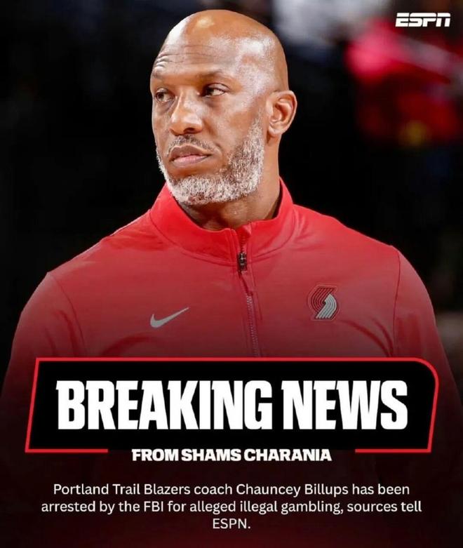 出大事了,闹翻天了。开拓者主帅比卢普斯因参与非法赌博被逮捕,该案件还涉及黑手党的非法扑克经营。比卢普斯刚执教完杨瀚森第一场常规赛比赛就出事了......目前暂时不能确定比