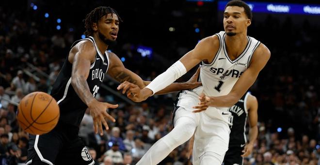 次节较量,文班亚马持续发威,篮网只能依靠着托马斯的单打零星取分。马刺越战越勇,并实现了内外开火,得以连续掀起得分狂潮,并且将分差扩大至26分。此后,圣安东尼奥进攻效率下滑。半场打完,马刺领先21分。