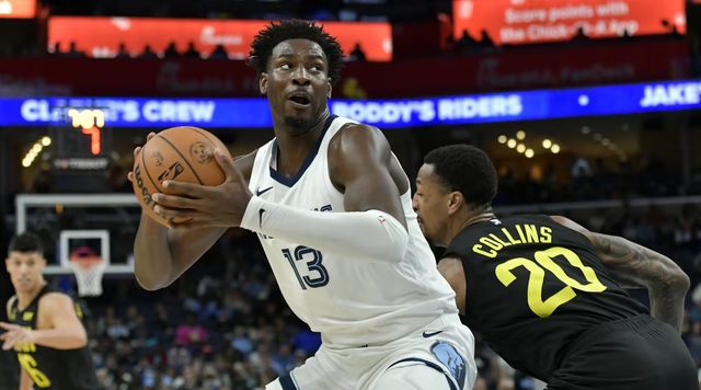 在进攻端,他作为一名具备投篮能力的大个子,能够在外围营造出足够多的投篮威胁,把对方的内线护框者拉出禁区,为莫兰特清空突破路线。