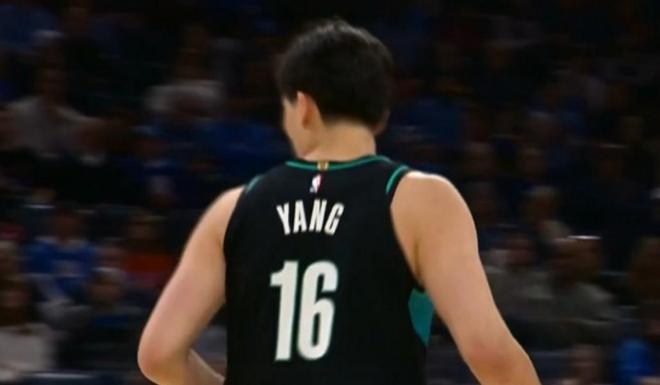 第二节,杨瀚森继续在场上,先助攻格兰特命中三分,随后自信出手投进生涯首个三分。