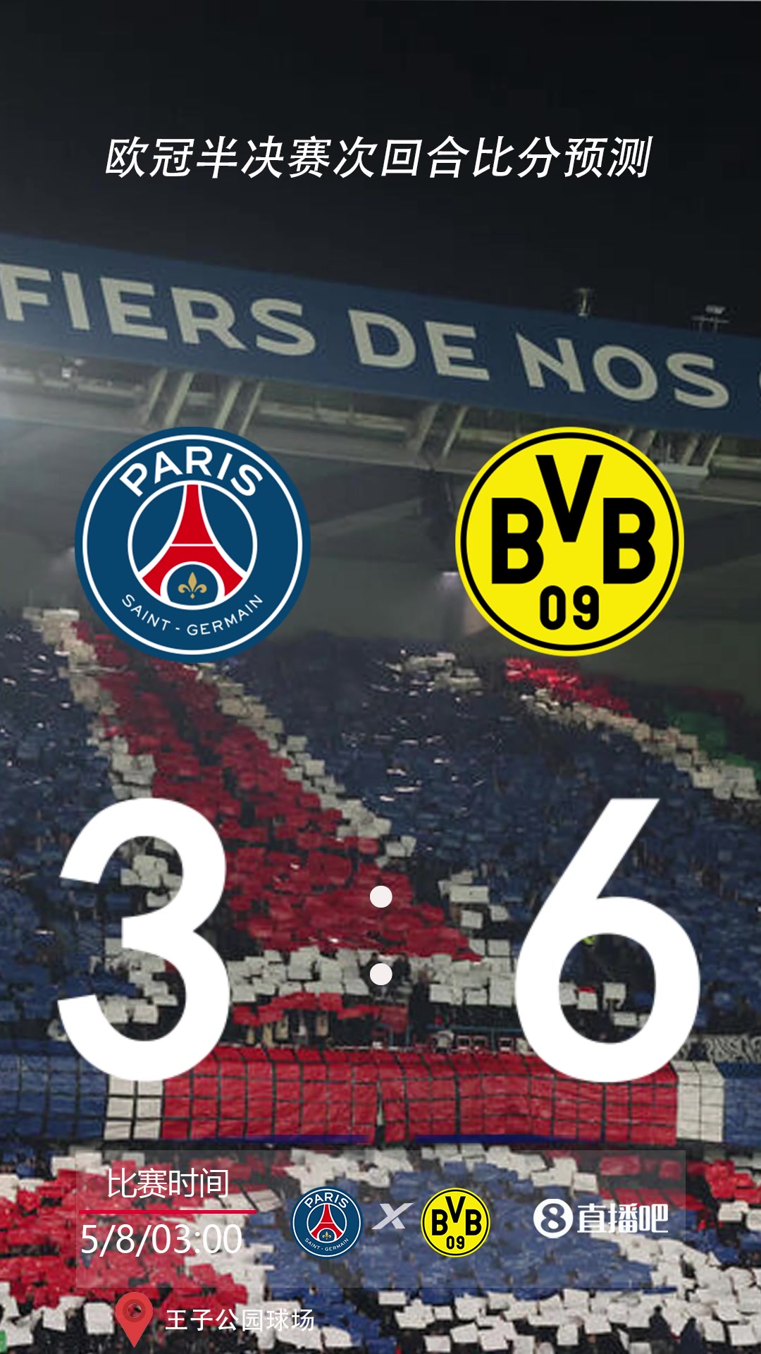 北京时间5月8日3:00 巴黎圣日耳曼vs多特蒙德