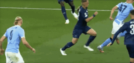 第56分钟,福登中路挑传,哈兰德头球吊射破门,1-0!曼城取得领先。