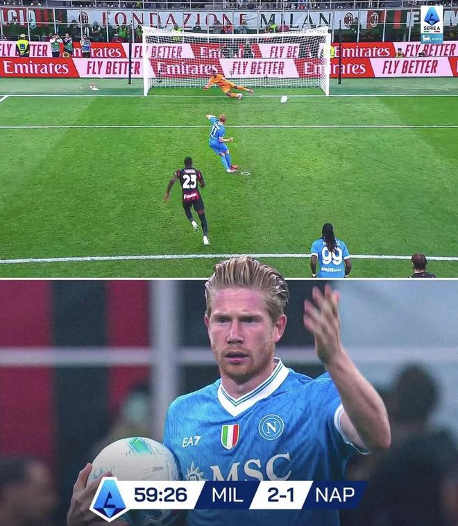 不过,下半场米兰遭遇打击,埃斯图皮尼安吃到红点套餐,德布劳内点球破门扳回一球,但是多打一人的那不勒斯未能追平比分,最终客场1-2落败。