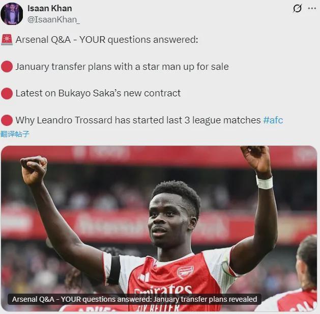 跟队记者:阿森纳冬窗或出售热苏斯,暂无引援计划!萨卡将续约!