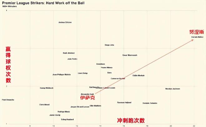 伊萨克在他身体状态最佳时,过去几个赛季在英超的冲刺跑次数都是处于中下游的。本赛季错过夏训后,他身体处于最低谷,本场与利兹联比赛替补出场后整整用了7分钟才完成第一次触球,球队被绝平,他是有一定责任的。