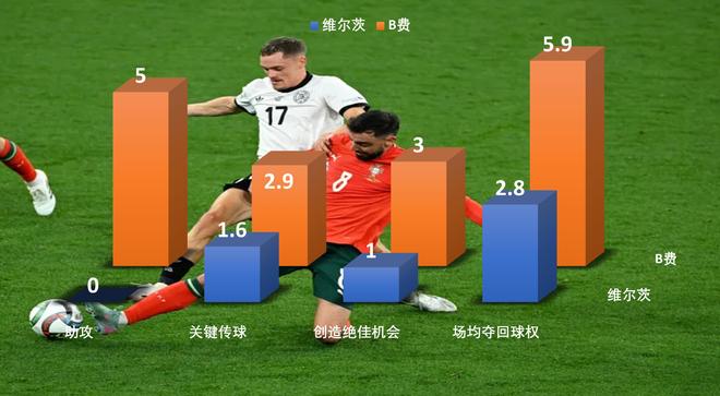 B费创造绝佳得分机会、关键传球和助攻都远超维尔茨的情况下,场均抢回球权次数还能翻倍于维尔茨,攻防两端存在感都远比维尔茨来得好。