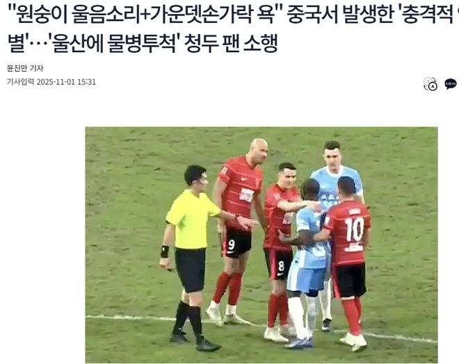 在中超第29轮的一场比赛中,成都蓉城主场1-2不敌河南,而且有球迷对河南队外援进行了种族歧视羞辱。这一事件不仅在国内足坛引起了轩然大波,也引发了国外媒体的关注。近日,韩国知