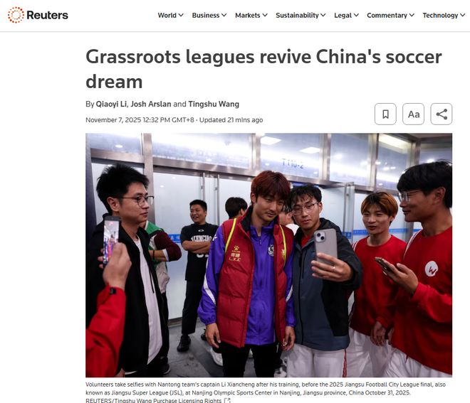 路透社7日的一篇报道指出,在中国农村,由农民、学生和工厂工人自发组织的业余足球联赛意外吸引了数百万观众,并激励大城市效仿。这燃起了中国通过“草根培育”培养人才、最